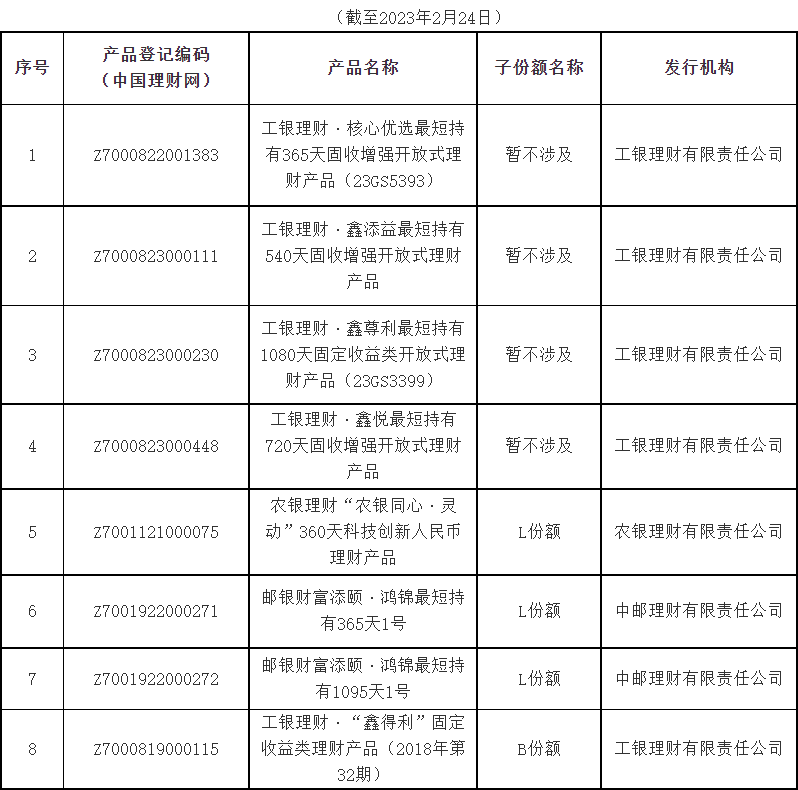 記者注意到,此次新增的11只產品均涉及子份額。其中,工銀理財發布的2只產品子份額名稱為“B份額”,其余9只產品子份額名稱為“L份額”。