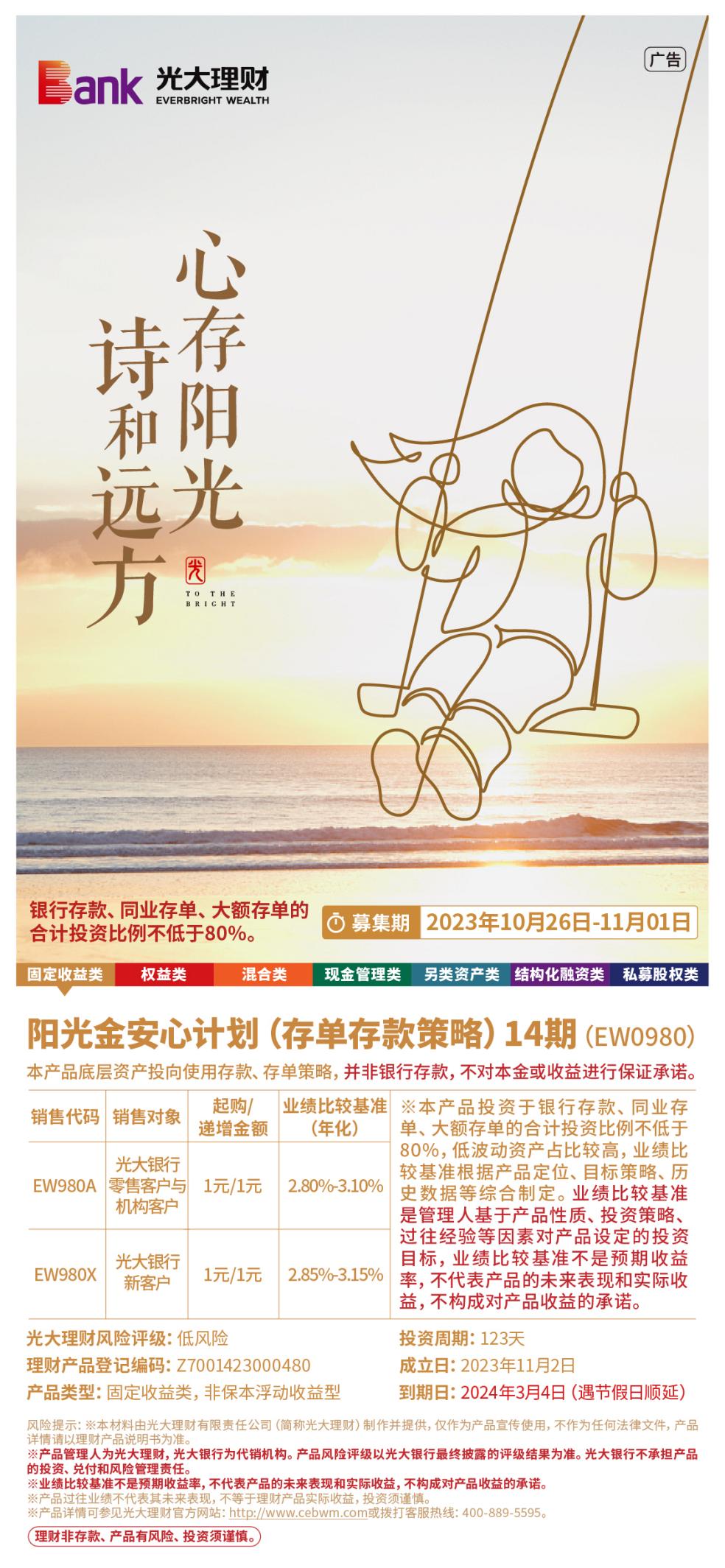 據光大理財介紹,該系列產品期限覆蓋3個月至1年,今年以來平均年化收益率3.11%(數據來源:光大理財,截至2023年9月28日)。