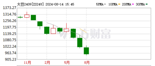 連日來,芝加哥商業交易所掛牌交易的大豆2409期貨合約(代碼:ZS24U)持續下跌,已跌破10美元/蒲式耳,目前運行在9.44美元/蒲式耳附近。