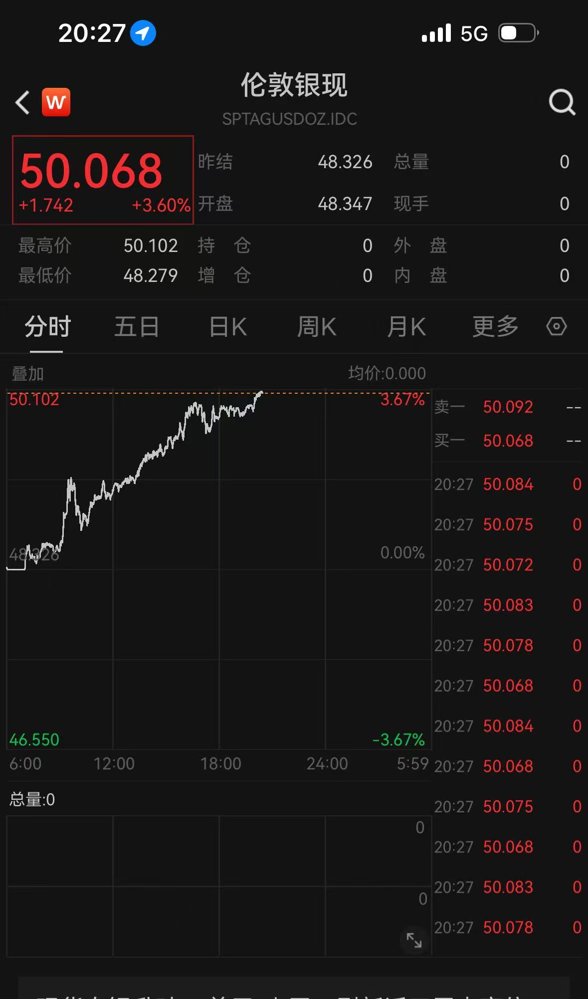 經歷了短期調整之后,北京時間11月10日晚間,倫敦銀現再度走高,截至記者發稿時,倫敦銀現(現貨白銀)漲逾3%,重新站上50美元/盎司,受白銀上漲提振,倫敦金現(現貨黃金)漲超2%,報4094美元/盎司。