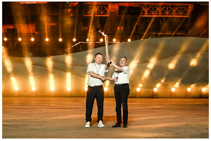 晚會還見證了一場跨越千里的情誼接力——茅友嘉年華舉辦城市火炬交接儀式在新疆與天津之間舉行。