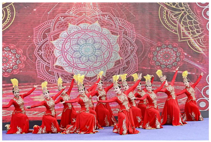 新疆喀什,不僅有著壯麗的自然風光,更有著深厚的文化底蘊。而在千里之外的貴州,那片充滿山水靈韻的地方,也孕育著獨特的民族風情和動人的音樂旋律。晚會現場,一個個精彩紛呈的節目依次上演:歌曲《來吧新疆》,帶領茅友一同走進喀什,感受它的獨特魅力,領略一場跨越地域與時空的文化盛宴;舞蹈《疏勒樂舞》,讓茅友們觸摸西域文化的脈搏,感受歲月沉淀的藝術魅力;侗族大歌+民族服飾走秀,共同上演了一場跨越山海的文化對話……一曲《美麗新疆好地方》,讓優美的旋律帶著朋友,再次沉醉在這片熱土的萬種風情里,也把本次活動推向高潮。