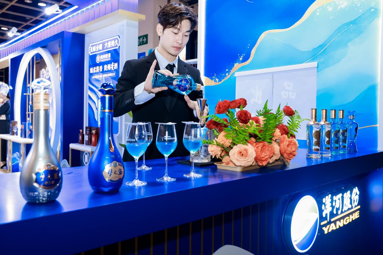 特設的雞尾酒調制區,調酒師以洋河系列產品為基酒,現場創作出多款融合中西風味的創意特調,為賓客們帶來了一場精彩的視覺與味覺盛宴。