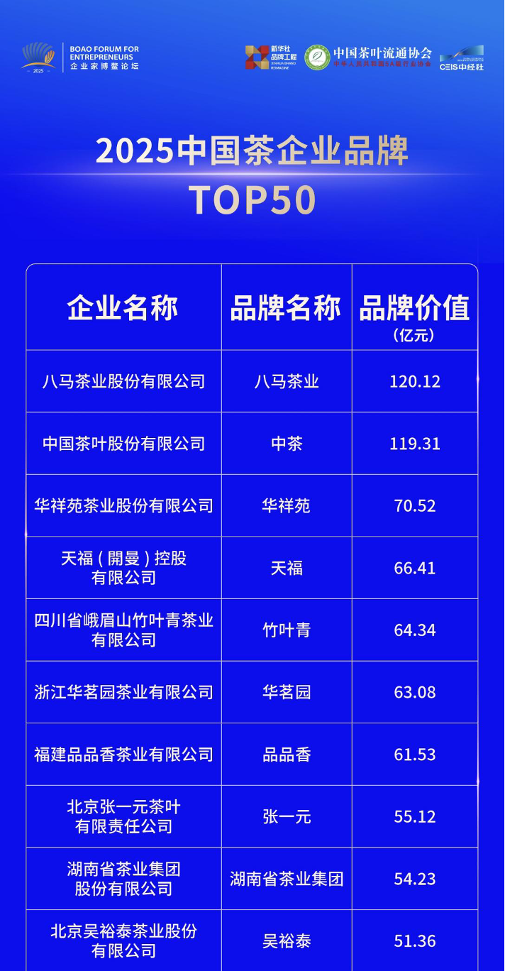 而“2025中國茶企業品牌調查結果TOP50”調查由新華社中國經濟信息社、中國茶葉流通協會共同發起,秉持“科學、公開、公正、公認、公益”原則,依據現行品牌評價標準體系,充分結合品牌帶動力、市場領導力、品牌研發力等多維度調查,重點考量品牌在品質、創新、服務等方面的表現,對2100余家茶葉代表進行科學分析評價。