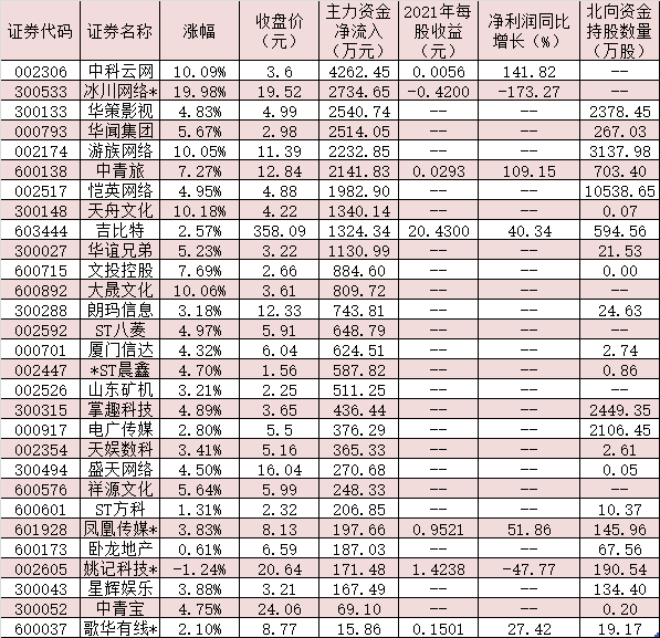 與此同時,市場主力資金也積極布局游戲概念股。4月12日,板塊內共有29只概念股呈現主力資金凈流入態勢。中科云網主力資金凈流入居首,達到4262.45萬元,冰川網絡、華策影視、華聞集團、游族網絡、中青旅等5只概念股當日均受到2000萬元以上主力資金追捧,這6只概念股主力資金凈流入合計達1.64億元。