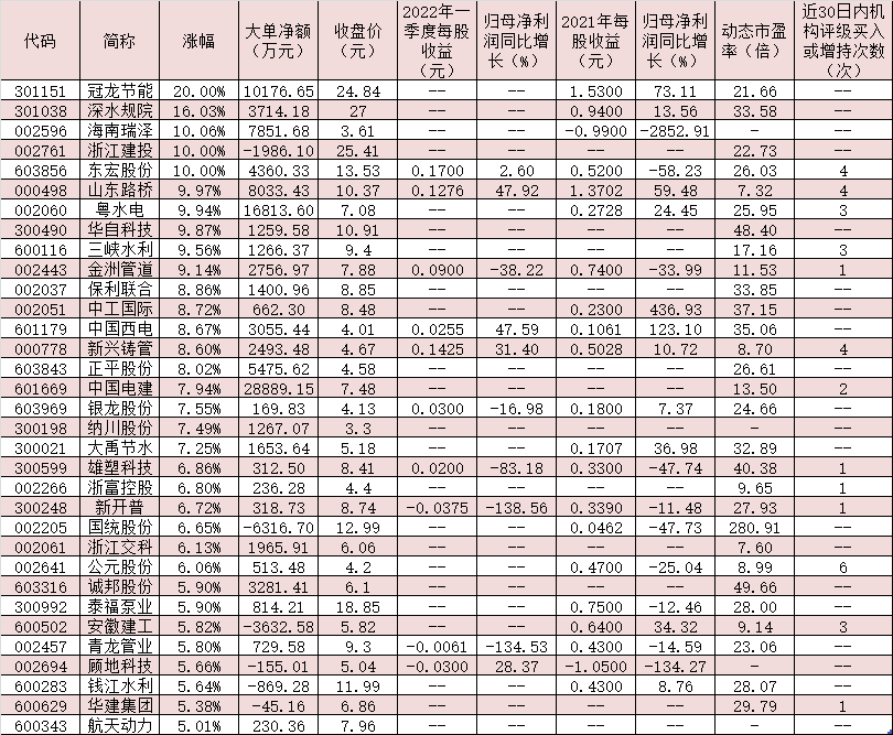 表:4月27日漲幅超5%的水利概念股一覽