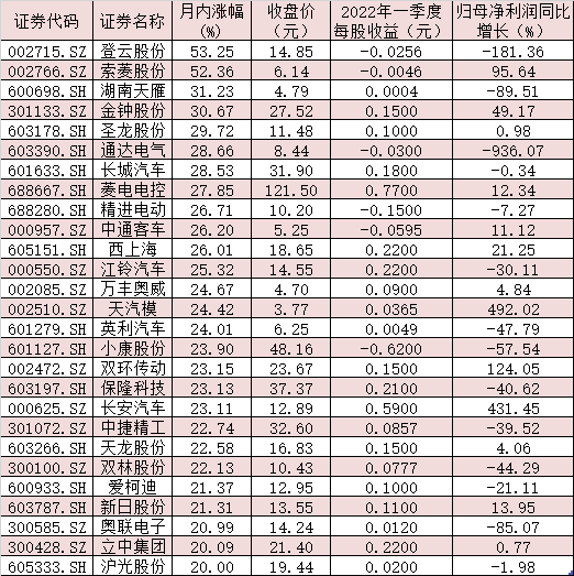 表:5月份以來漲幅在20%及以上的汽車股一覽