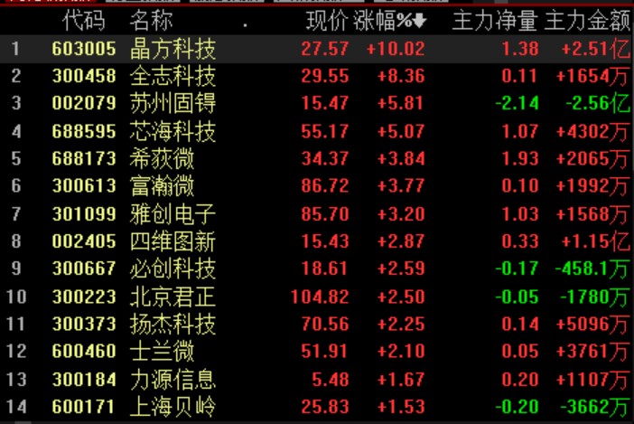 具體來看,6月29日上午,汽車芯片板塊逆市走強,漲1.16%,其中,晶方科技強勢漲停,全志科技、蘇州固锝、芯海科技等個股漲幅也均超5%。
