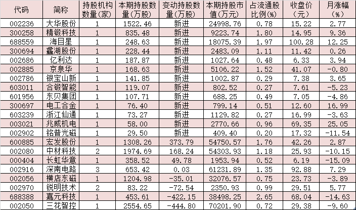 被視為“聰明錢”的QFII也提前布局部分新能源汽車概念股。同花順數據顯示,截至今年二季度末,有21只新能源汽車概念股獲QFII重倉持有,躋身前十大股東或流通股東,合計持股數量1.24億股,以今年二季度末收盤價計算,合計持股市值38.39億元。其中,17只概念股今年二季度獲QFII新進增持,包括大華股份、精鍛科技、海目星、蠡湖股份、億利達等在內的13只概念股期間被QFII新進持有,QFII繼續對宏發股份、中材科技、長虹華意、深南電路等4只概念股進行加倉。