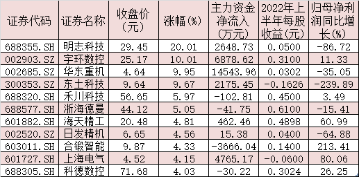 表:9月7日漲幅超4%的工業(yè)母機概念股