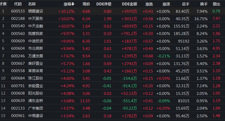 9月21日,房地產(chǎn)行業(yè)漲幅居首達1.41%。其中,市北高新、我愛我家、中天服務、棲霞建設(shè)、中天金融、中迪投資等6只個股集體漲停。