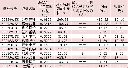 在政策大力支持下,今年上半年空氣儲能板塊上市公司業績表現較好。同花順數據顯示,上述12家空氣儲能板塊上市公司中,9家公司今年上半年實現歸母凈利潤同比增長,占比超七成。其中,蘇鹽井神、雪天鹽業、魯銀投資等3家公司報告期內實現歸母凈利潤同比翻番。