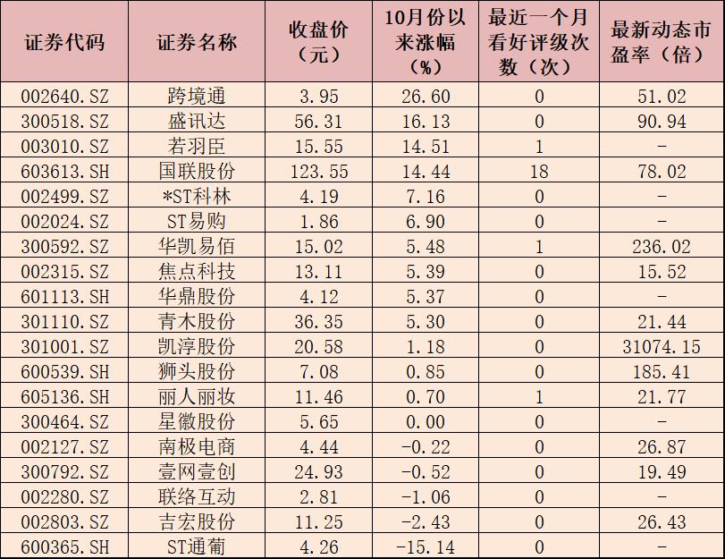 表:10月份以來互聯(lián)網(wǎng)電商股市場表現(xiàn)一覽