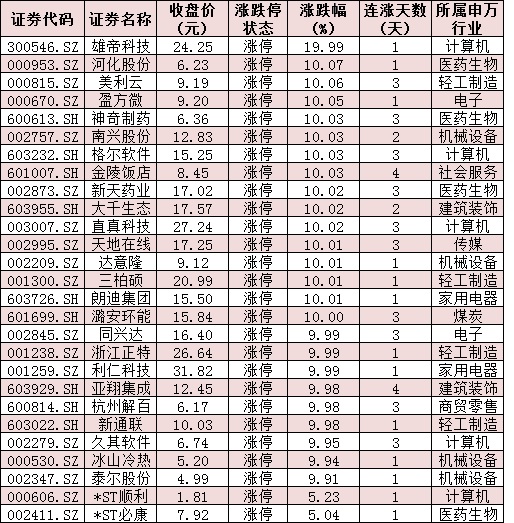 漲停板方面,10月28日,有27只個股漲停,87只個股跌停。從漲停個股看,有12只漲停股,股價已連續上漲3個交易日以上。行業方面看,計算機(5只)、機械設備(4只)、醫藥生物(4只)、輕工制造(4只)等行業漲停股居前,均在4只及以上。