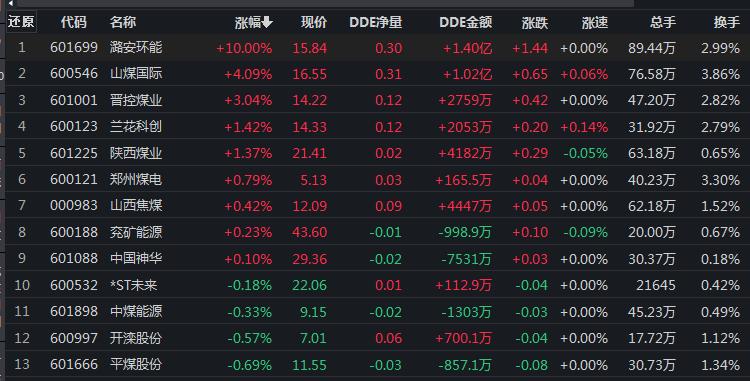 10月28日,煤炭行業表現穩健,收盤跌幅達0.59%,跌幅較小。其中,潞安環能沖至漲停。