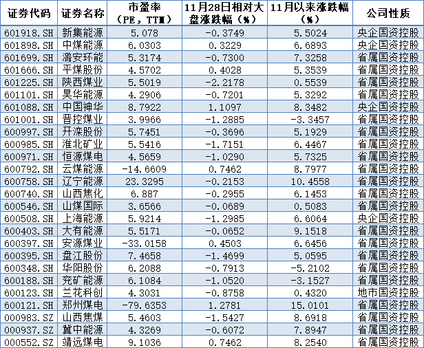 市場表現上看,據同花順數據顯示,煤炭板塊32只概念股,11月以來29只實現區間上漲,占比逾九成,鄭州煤電、美錦能源、遼寧能源累計漲幅超10%。
