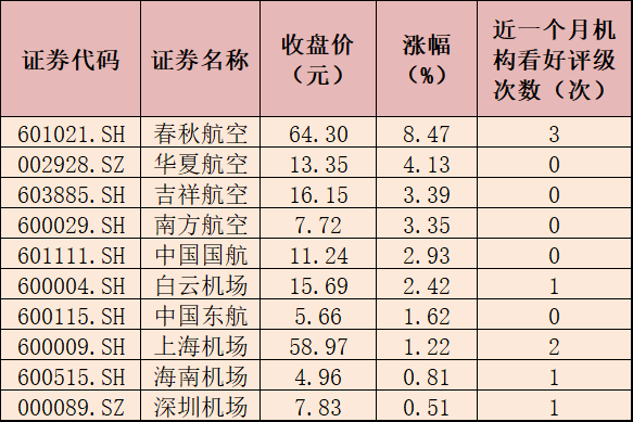 最近一個月,有機構對于部分機場航運概念股表示看好,具體來看,有5只個股獲機構給予“買入”或“增持”等看好評級,其中,春秋航空獲得看好評級次數最多,為3次,上海機場、白云機場、海南機場、深圳機場獲得看好評級次數分別為2次、1次、1次、1次。