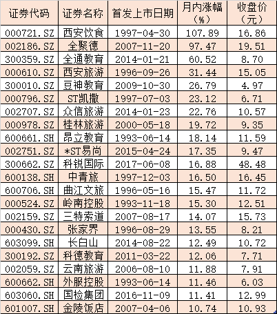表:月內(nèi)累計漲幅超10%的社會服務板塊個股