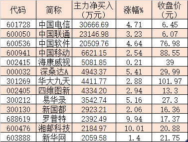 表:3月8日受到2000萬元以上主力資金追捧的數據要素概念股