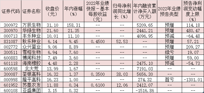表:年內(nèi)股價實現(xiàn)上漲的種業(yè)股情況: