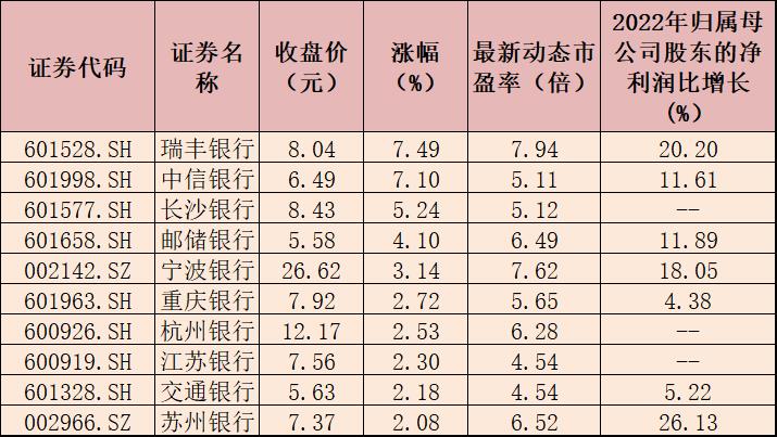“今日銀行股大漲,主要有兩方面的原因。一是近期國家公布的經濟數據顯示,我國實體經濟正在穩步復蘇中,這一利好消息提升了銀行資產質量的預期。二是銀行板塊估值目前處于低位,隨著國家經濟形勢的好轉,具備較高的配置性價比。”川財證券首席經濟學家、研究所所長陳靂在接受《證券日報》記者采訪時表示。