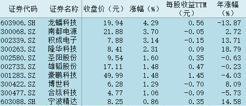 表:今日動力電池回收板塊漲幅前十個股一覽