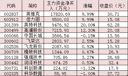 表:6月6日受到主力資金追捧的液冷服務(wù)器概念股