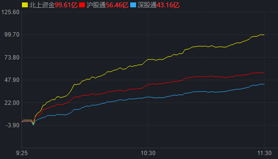 從資金面來看,7月13日上午,北上資金凈買入金額達(dá)99.61億元,其中,滬股通凈買入56.46億元,深股通凈買入43.16億元。