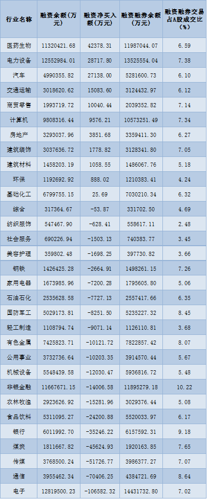 表:7月12日申萬一級(jí)行業(yè)兩融交易情況