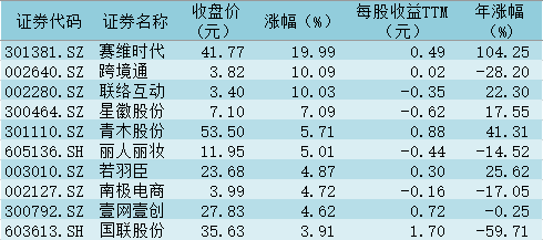 表:今日互聯網電商板塊漲幅前十個股一覽