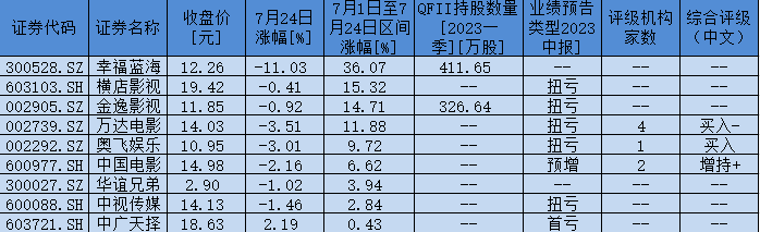表:7月1日至7月24日,影視院線板塊期間實現上漲個股一覽