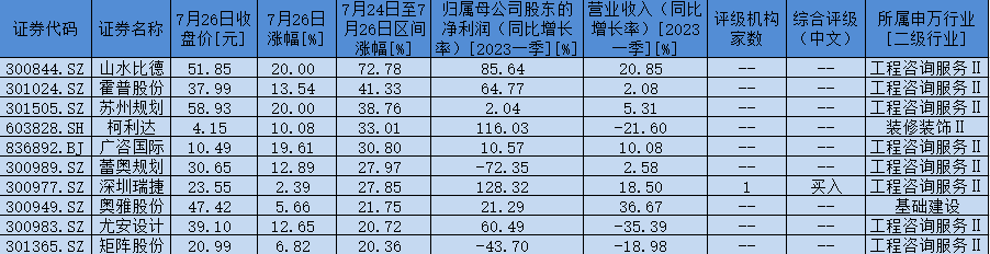 表:7月24日至7月26日,建筑裝飾行業(yè)期間累計(jì)漲幅超20%個(gè)股一覽