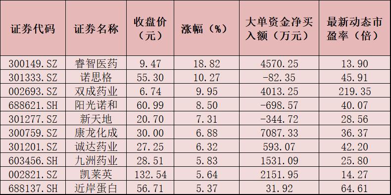 表:8月3日CRO概念板塊內漲幅居前十的個股一覽