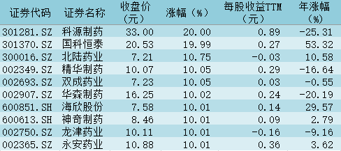 表:今日醫藥生物板塊漲幅前十個股一覽
