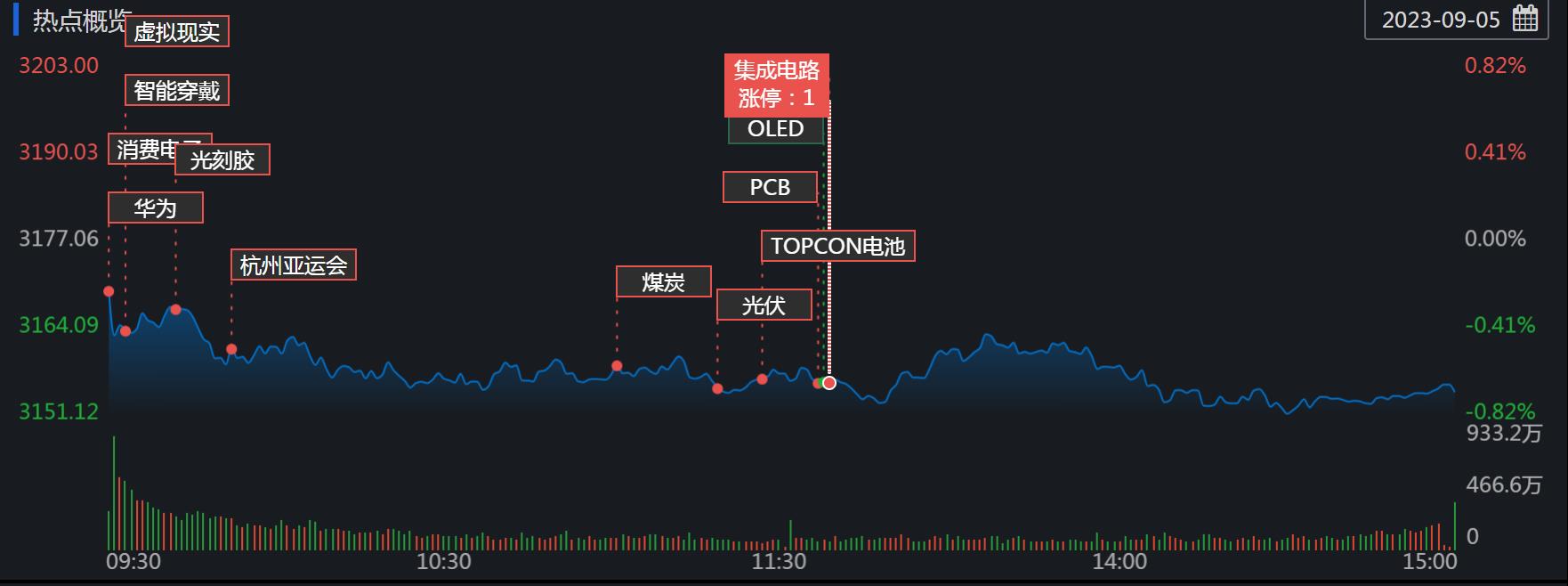 具體來(lái)看,今日,光伏概念股集體反彈,其中,BC電池板塊領(lǐng)漲,永和智控等6只概念股漲停;TOPCON電池板塊表現(xiàn)強(qiáng)勢(shì),帝爾激光等3只概念股漲停;光刻膠股全天強(qiáng)勢(shì),廣信材料、同益股份漲停;消費(fèi)電子概念股盤中異動(dòng),傳藝科技等4只概念股漲停;華為概念股繼續(xù)活躍,捷榮技術(shù)等3只概念股漲停;HJT電池、電子化學(xué)品、電子紙、鈣鈦礦電池、存儲(chǔ)芯片、光學(xué)光電子、廚衛(wèi)電器、電力等板塊表現(xiàn)活躍。房地產(chǎn)服務(wù)板塊領(lǐng)跌,租售同權(quán)、房地產(chǎn)開發(fā)、傳媒等板塊跌幅居前。