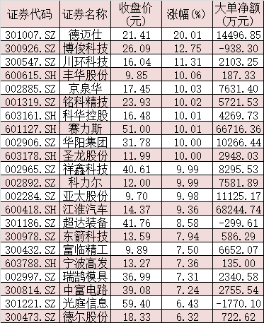 9月18日,華為汽車板塊集體走強,截至收盤,其整體漲3.78%,跑贏上證指數(漲0.26%)。其中,11只概念股集體漲停,德邁仕20CM漲停,豐華股份、京泉華、銘科精技、科華控股、賽力斯、華陽集團、圣龍股份、祥鑫科技、科力爾、亞太股份等10只概念股漲停。