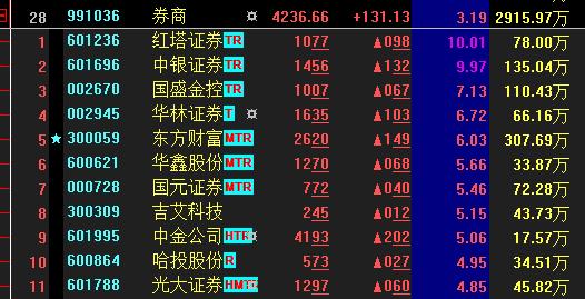 熱點三:券商板塊漲逾3%2股聯袂漲停