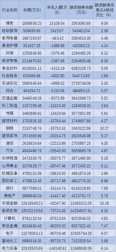 表:4月21日申萬(wàn)一級(jí)行業(yè)兩融交易情況:
