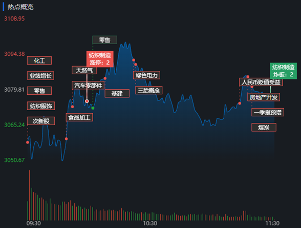 具體來看,截至4月22日11:30,紡織服裝行業(yè)漲幅達(dá)4.22%。
