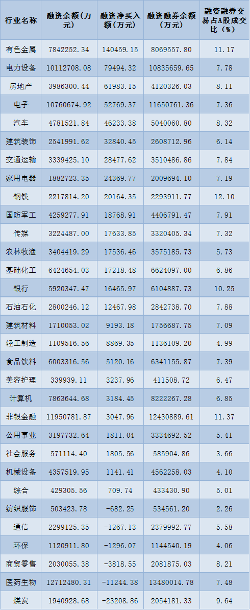 表:5月23日申萬一級行業(yè)兩融交易情況: