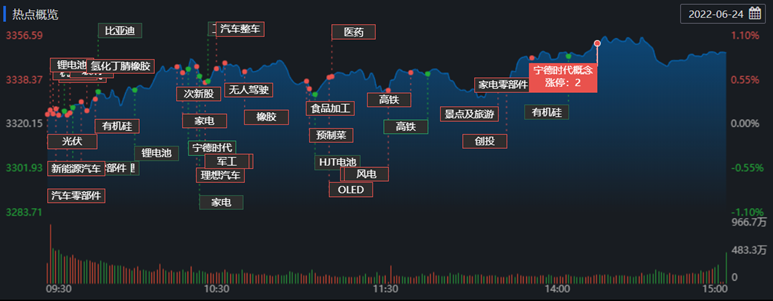 從熱點板塊看,景點及旅游板塊領漲,大漲7.6%;光伏板塊持續走強,16只概念股漲停;HJT電池、酒店及餐飲、廚衛電器、在線旅游、CRO概念、白色家電等板塊表現活躍;教育板塊領跌,煤炭開采加工、貴金屬、中韓自貿區、油氣開采及服務、銀行、水利等板塊跌幅居前。