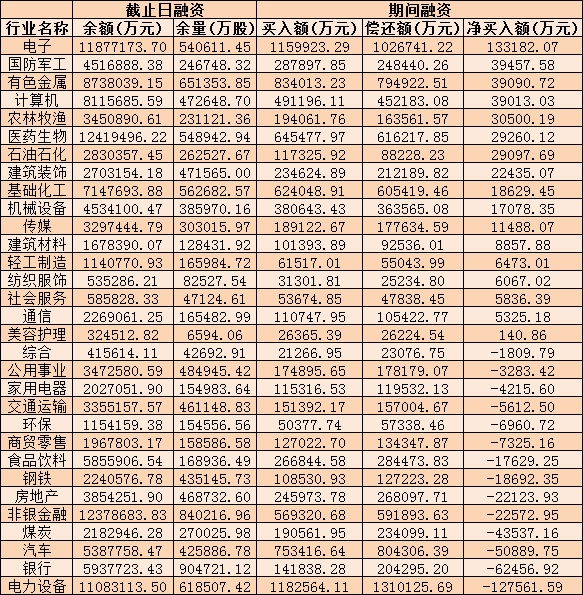 表:6月29日申萬一級行業(yè)兩融交易情況: