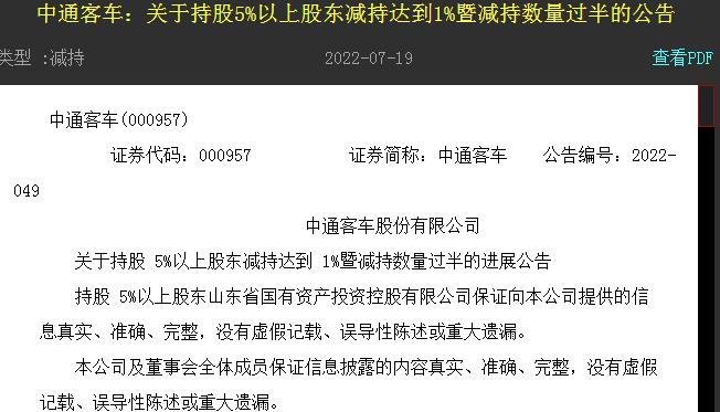 與此同時(shí),今日,中通客車發(fā)布了關(guān)于持股5%以上股東減持達(dá)到1%暨減持?jǐn)?shù)量過半的公告。