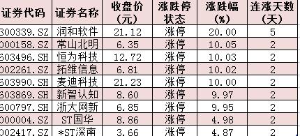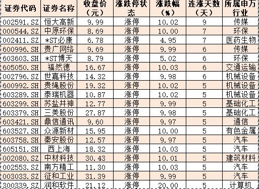 表:今日漲停且連漲5日以上的個(gè)股情況:
