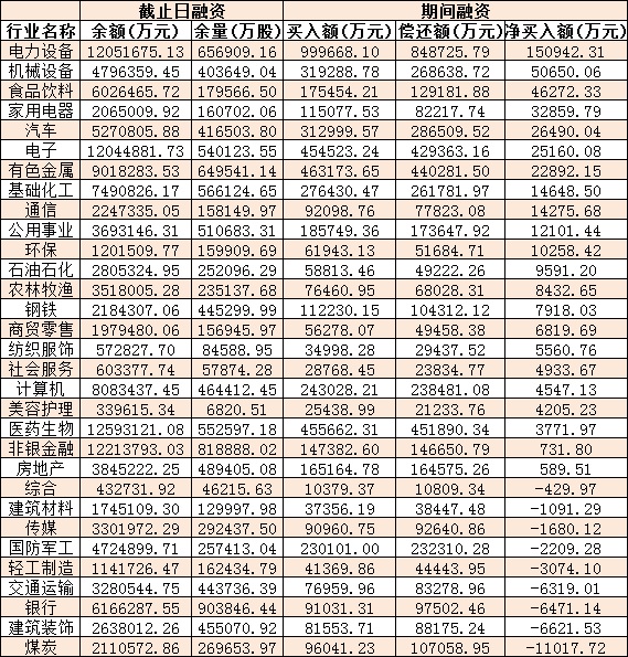 表:7月27日申萬一級行業兩融交易情況: