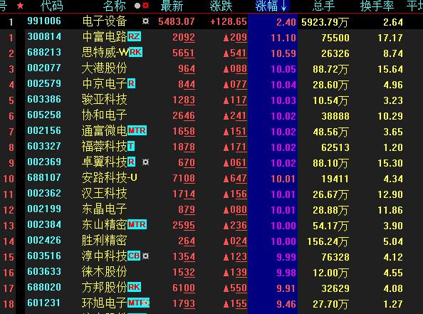 具體來看,截至7月28日上午收盤,電子設備板塊漲幅居首,達2.4%,其中,包括大港股份、中京電子、駿亞科技、協和電子等13只概念股集體漲停。