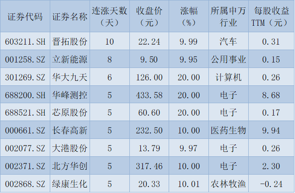 漲停方面,有72只個股漲停,其中,有9只漲停股,股價已連續上漲超過5個交易日。跌停方面,有19只個股跌停。從行業角度看,電子行業漲停股達18只,居首,緊隨其后的計算機行業漲停股家數達到10只。
