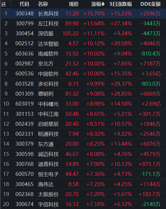 8月5日,申萬一級行業中計算機領漲,漲幅達3.93%。行業255只交易中的個股,有224只上漲,其中,有10只個股漲停,48只個股漲幅超5%。