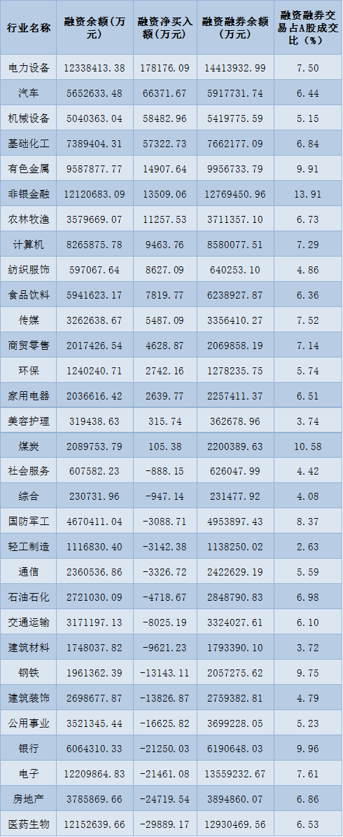 表:8月17日申萬一級行業(yè)兩融交易情況:
