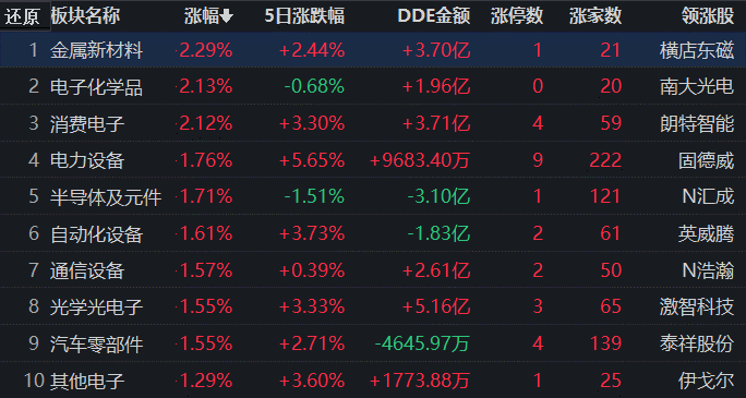 從漲幅居首的金屬新材料行業(yè)看,截至8月18日11:30,行業(yè)交易中的23只個股有21只上漲,其中,有1只個股漲停。從資金流向看,金屬新材料行業(yè)今天上午大單資金凈流入額達3.70億元,居行業(yè)第3位。